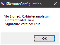 <RSAKeyValue><Modulus>...</Modulus><Exponent>...</Exponent></RSAKeyValue><Signature xmlns="http://www.w3.org/2000/09/xmldsig#"><SignedInfo><CanonicalizationMethod Algorithm="http://www.w3.org/TR/2001/REC-xml-c14n-20010315" /><SignatureMethod Algorithm="http://www.w3.org/2001/04/xmldsig-more#rsa-sha256" /><Reference URI=""><Transforms><Transform Algorithm="http://www.w3.org/2000/09/xmldsig#enveloped-signature" /></Transforms><DigestMethod Algorithm="http://www.w3.org/2001/04/xmlenc#sha256" /><DigestValue>.../DigestValue></Reference></SignedInfo><SignatureValue...</SignatureValue></Signature></WLS>
